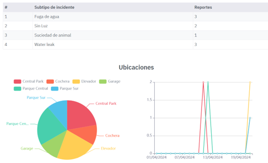El módulo de back-office, además de permitir personalizar toda la solución, proporciona gráficas, datos históricos y reportes sobre el comportamiento de los diferentes tipos de incidentes, permitiendo así identificar y eficientizar los recursos y los servicios dentro de la institución o empresa.